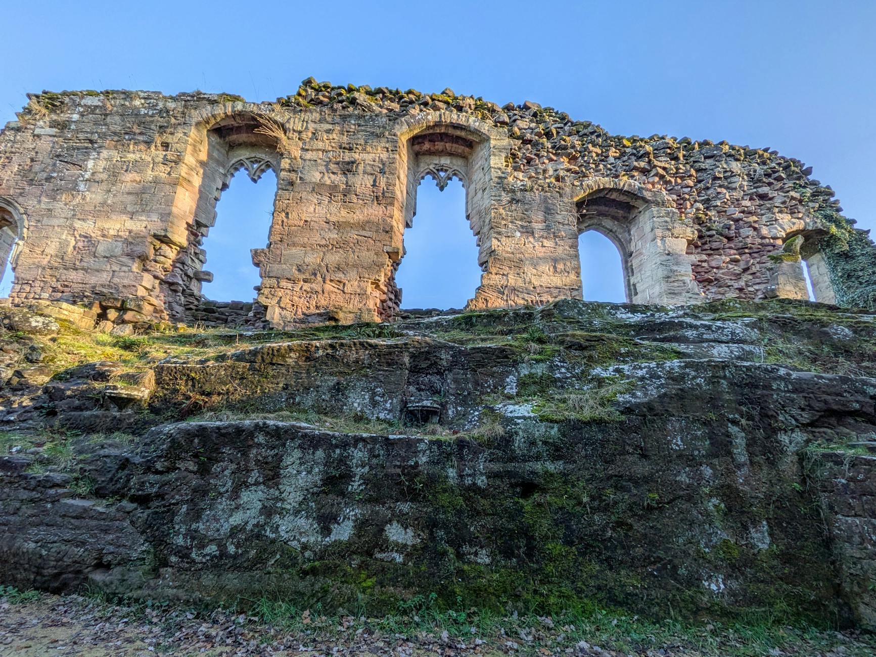 - Krużganki i arkady – nawet częściowo zachowane, tworzą mocny, rytmiczny motyw na zdjęciach. Ustawienie osoby w jednej z arkad pozwala pokazać skalę całej konstrukcji.